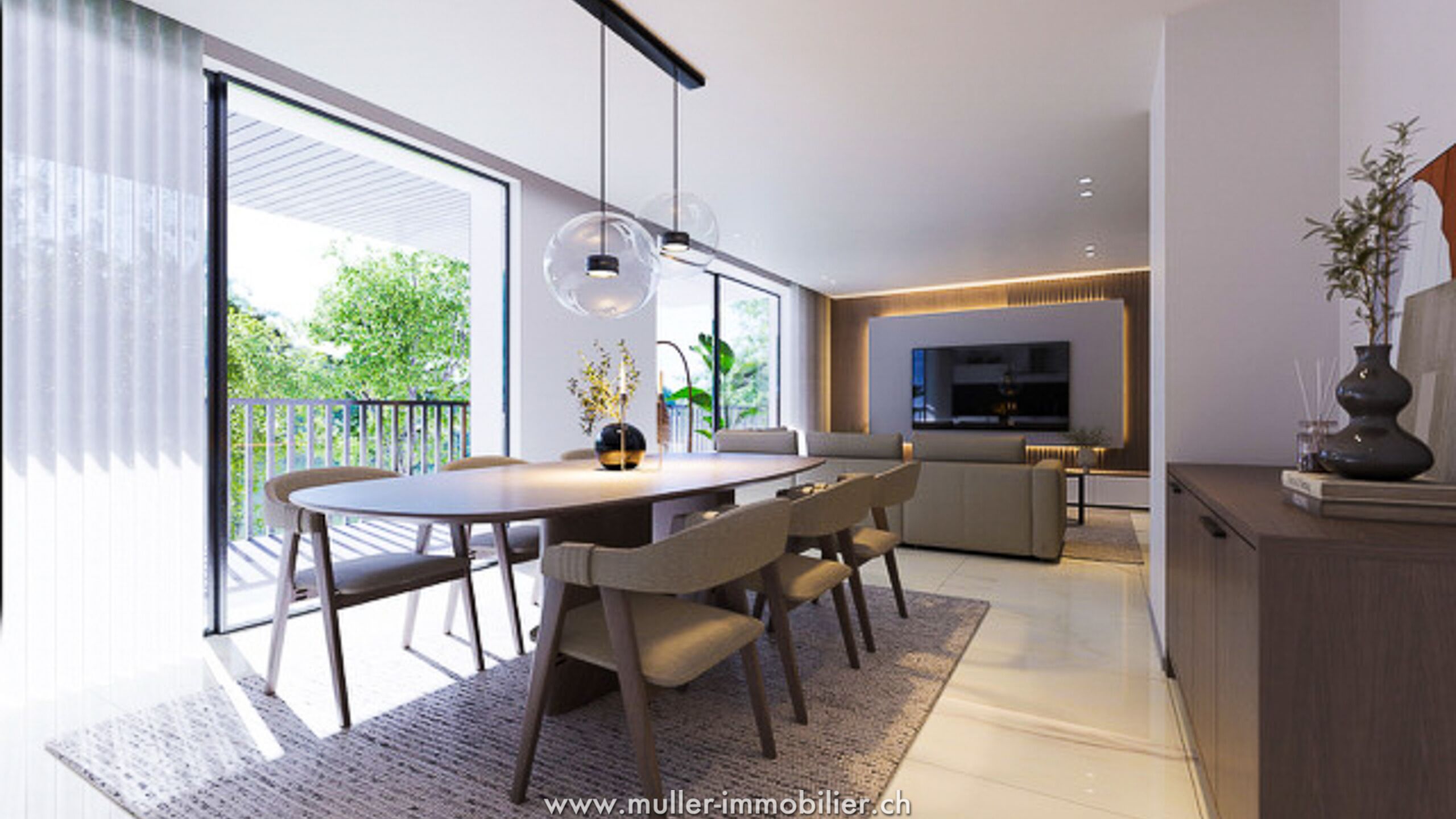 Joli duplex traversant de 4,5 pièces d’une surface habitable de 144 m2 au dernier étage dans une petite PPE de 8 logements à Chavannes-les-Forts.