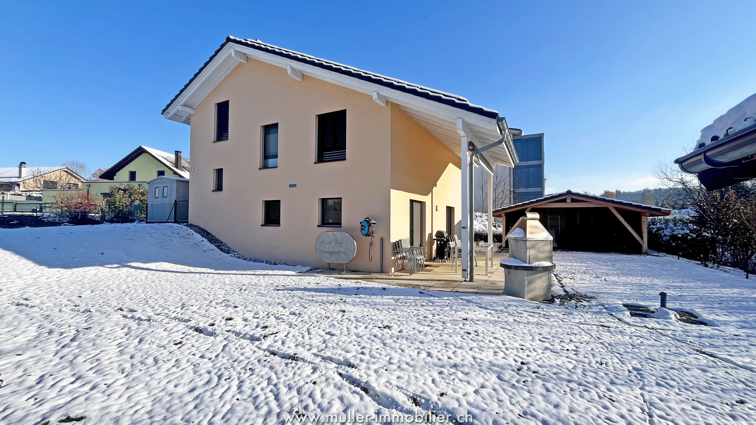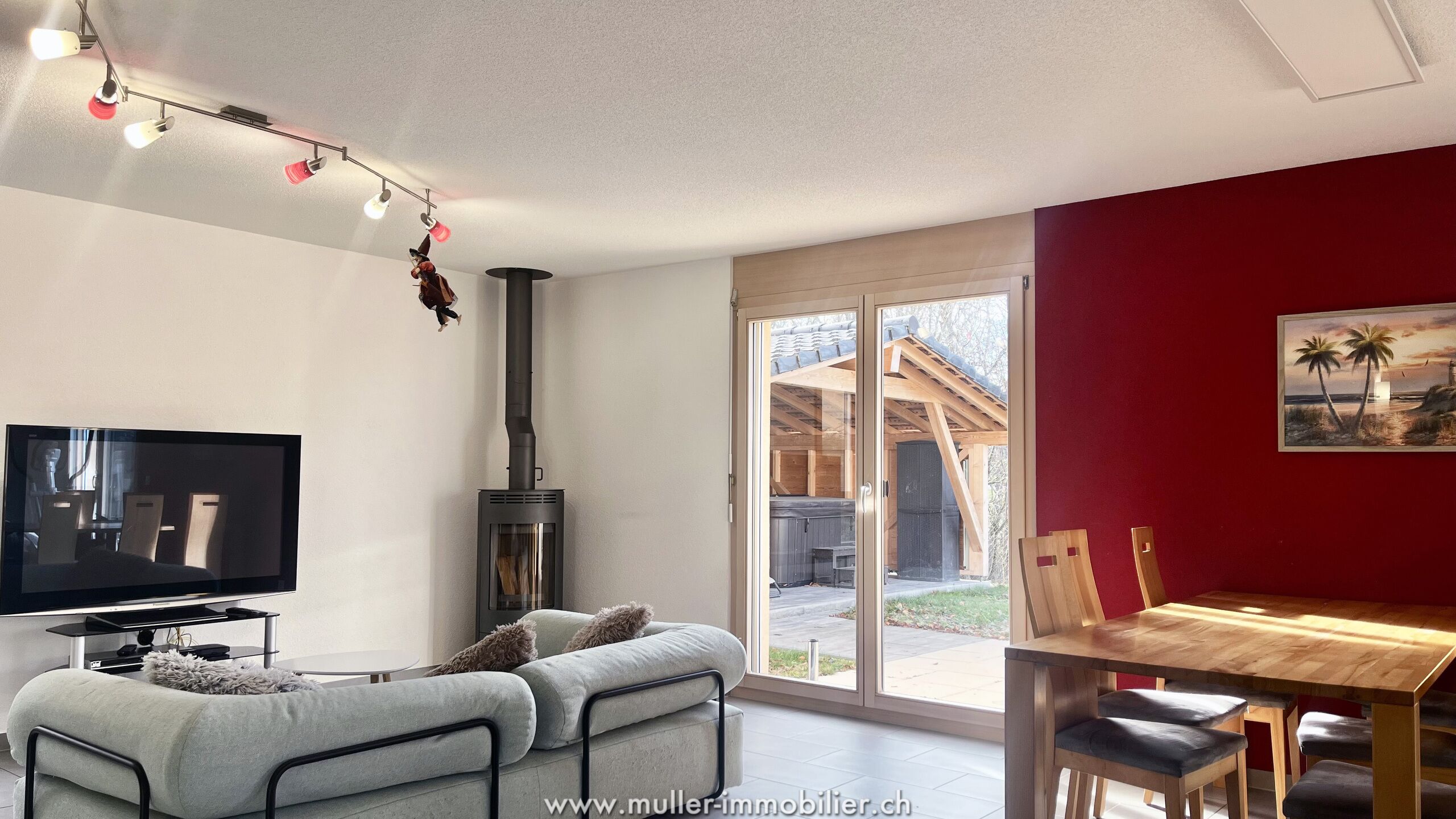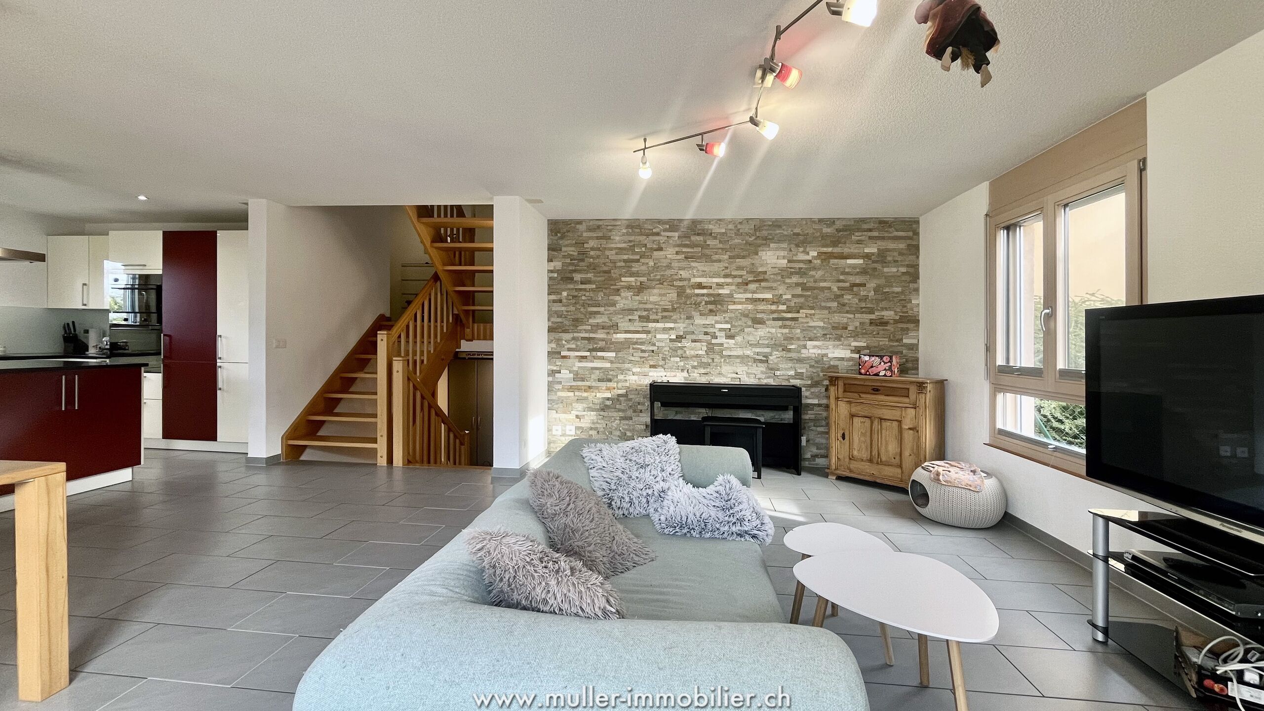 Grande villa individuelle en demi-niveau de 5.5 pièces et 148 m2 habitables, transformable en 6.5 pièces, avec pavillon de jardin et jacuzzi, sur une parcelle de 842 m2, dans le sympathique village de Châtonnaye.
