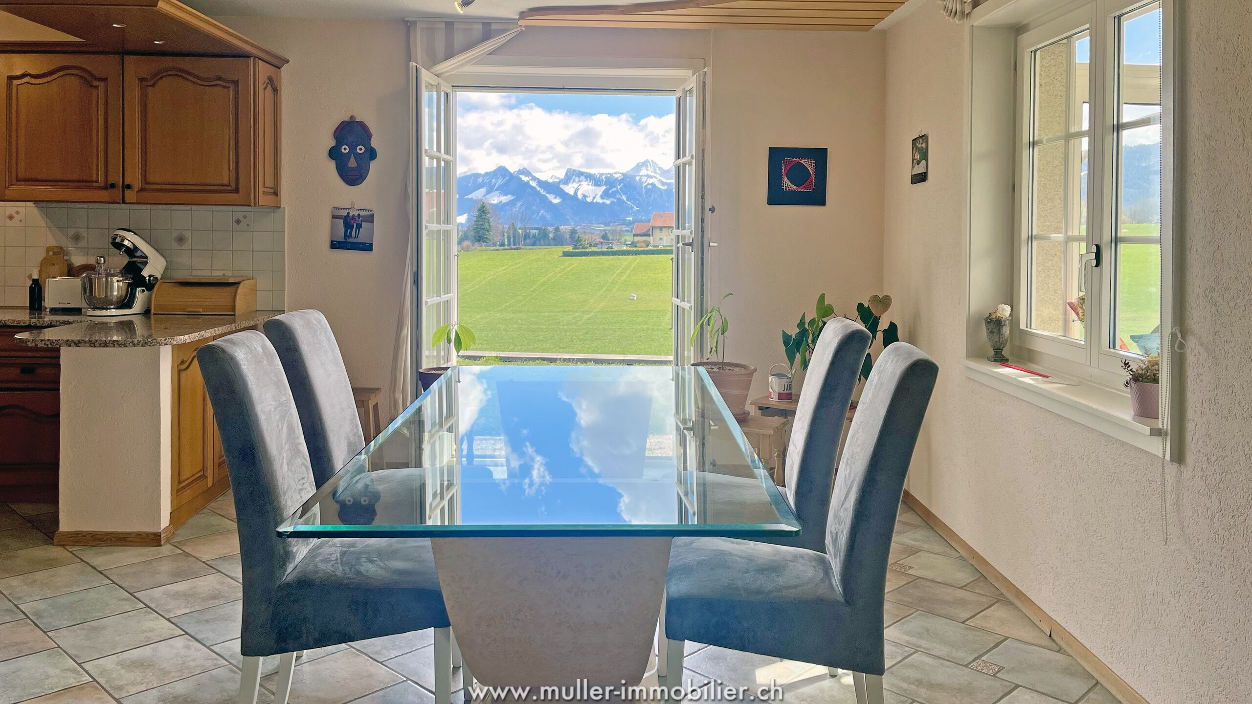 La maison est située sur une parcelle de 924 m2 au cœur du village de La Joux, sur la commune de Vuisternens-devant-Romont à 10 min de Romont seulement.